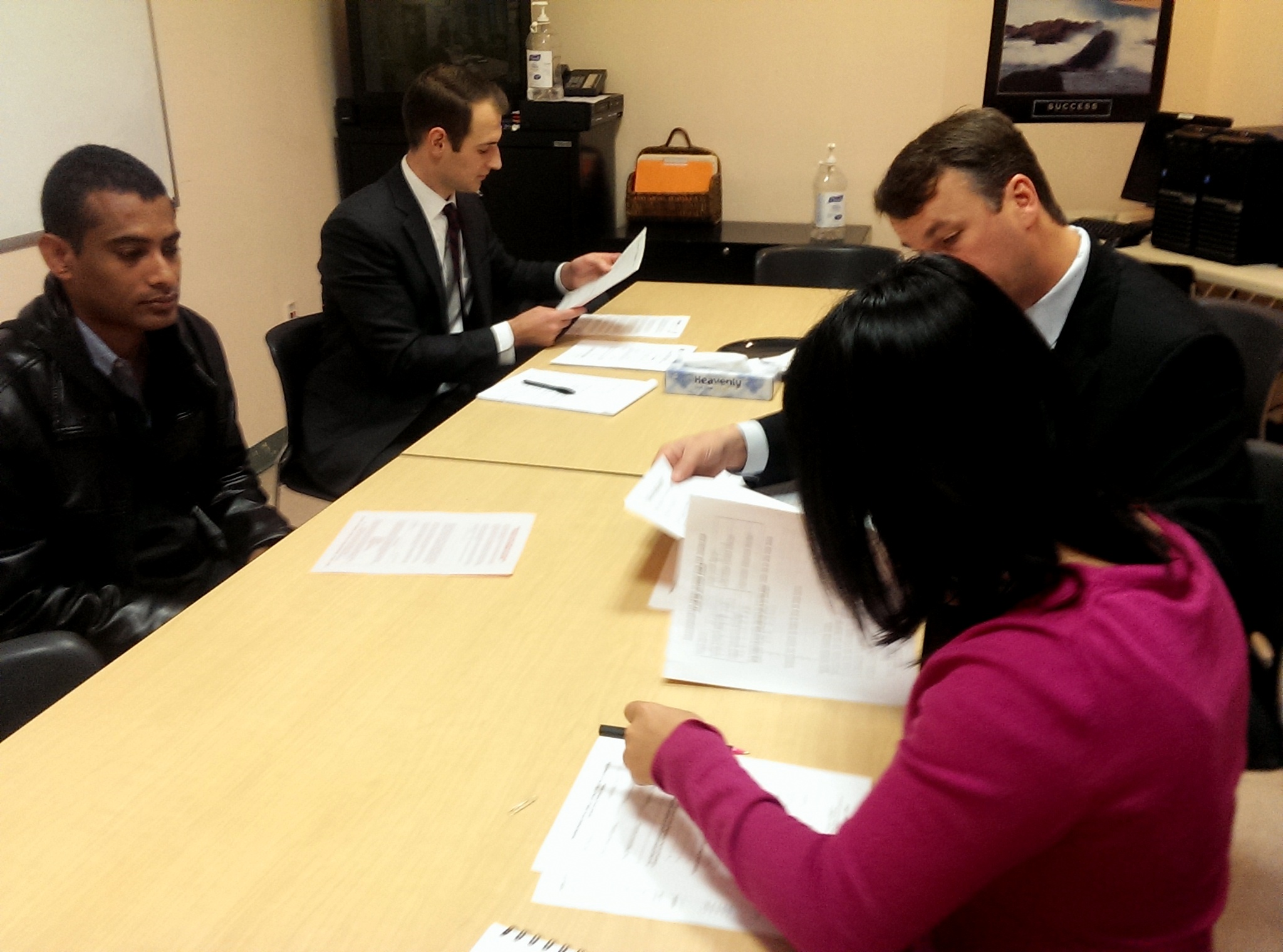 When the Clinic ended at noon, volunteers met to discuss potential cases with Clearinghouse Executive Director Maribeth Perry. Each case will be subject to a conflicts check and will require final approval from the firm.